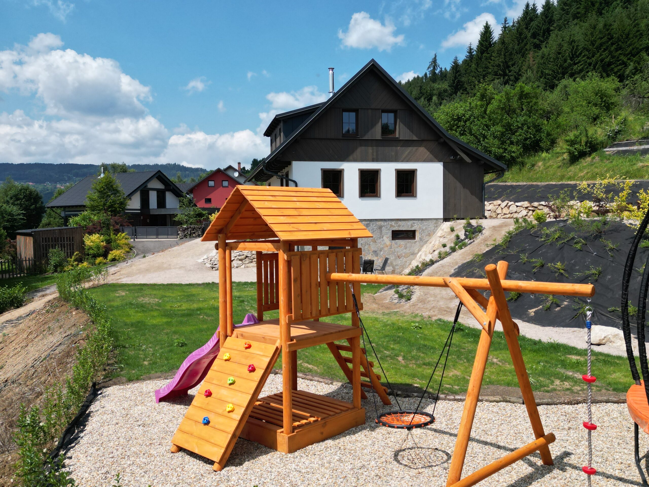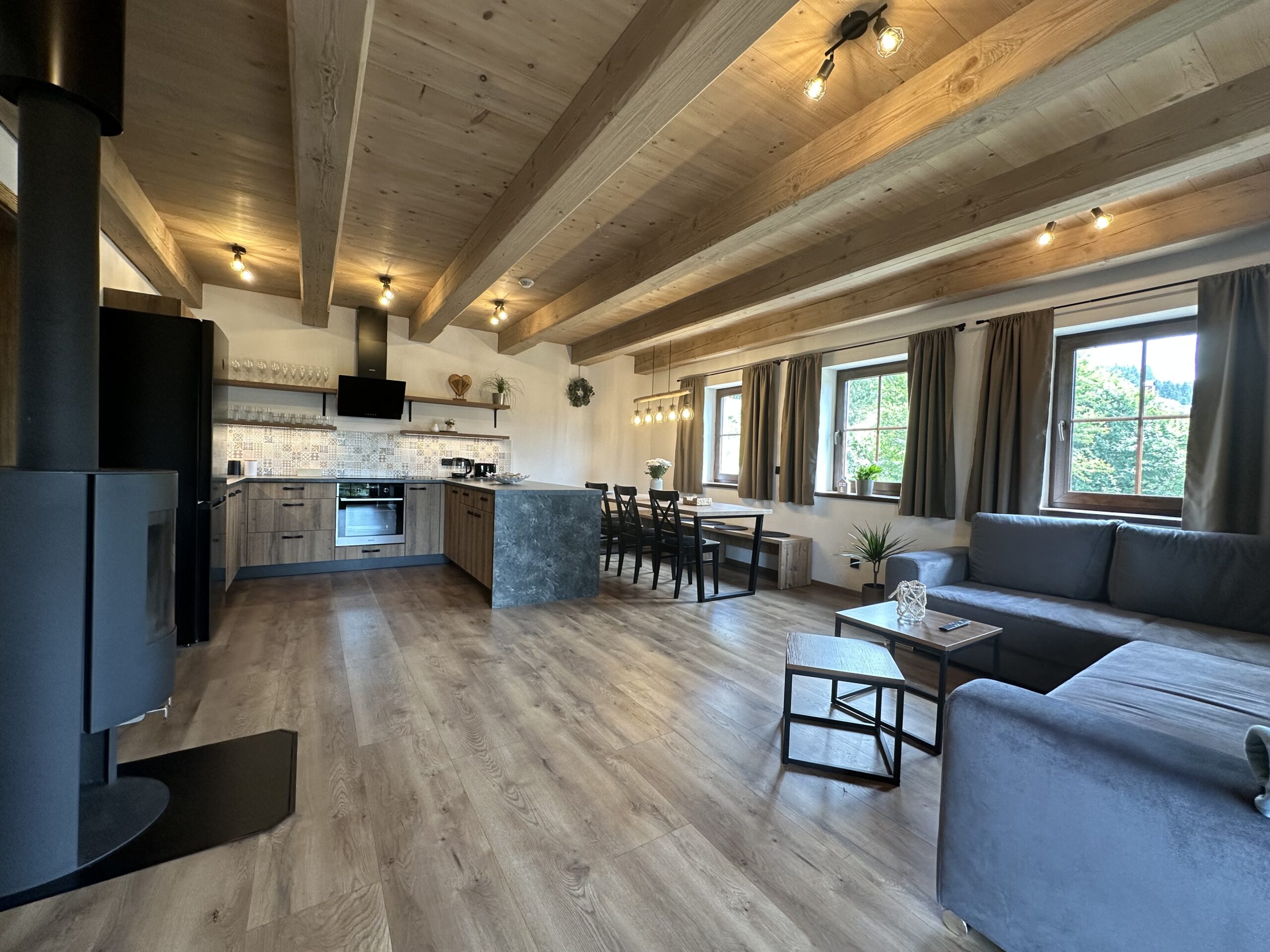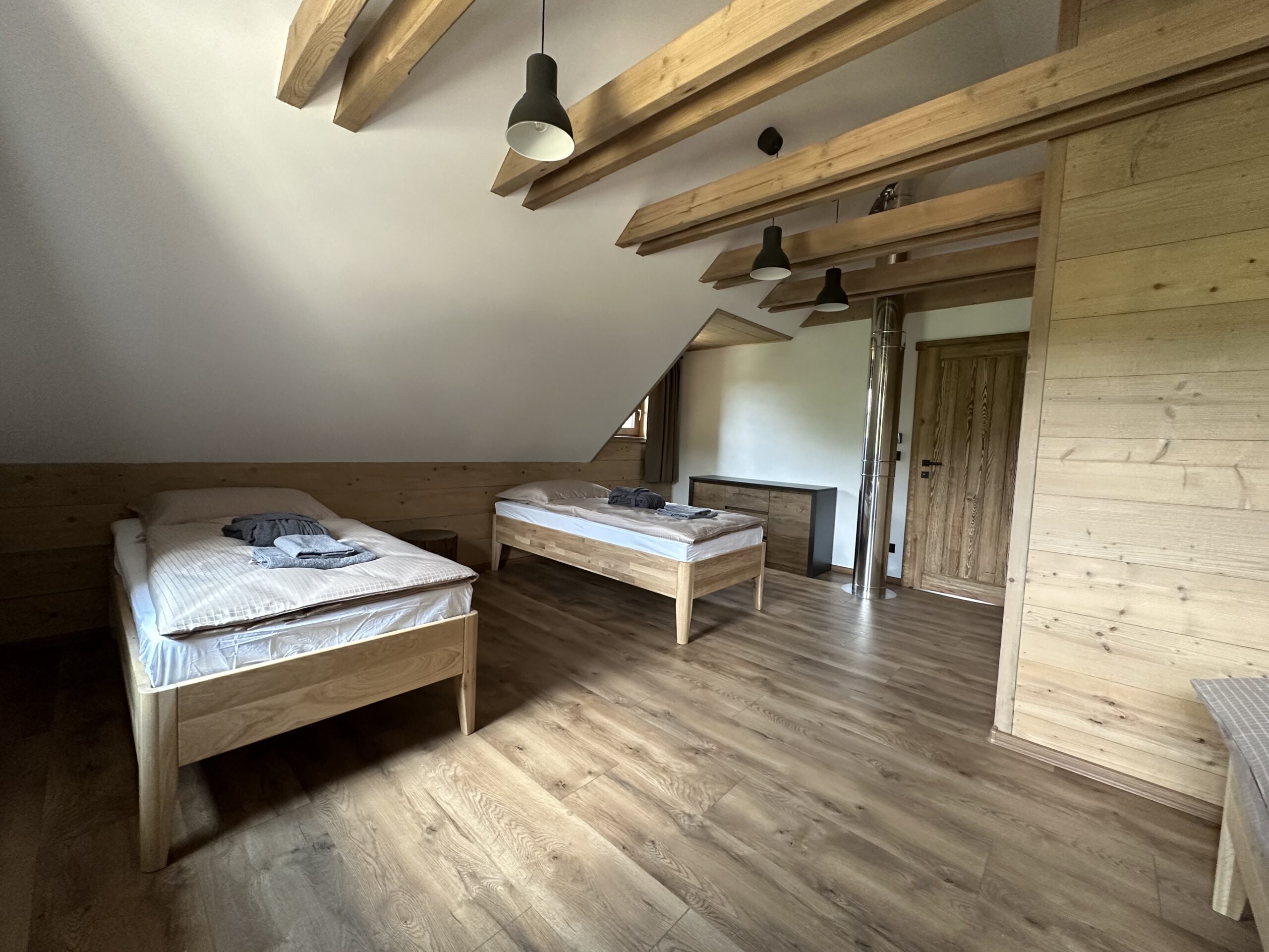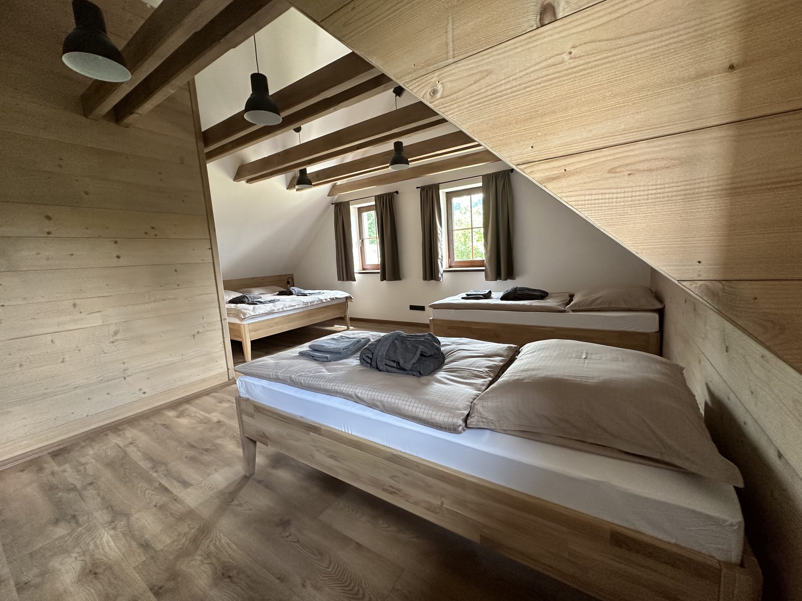 Komfortní ubytování – Prostorné a moderně vybavené pokoje, plně vybavená kuchyně a soukromá sauna.